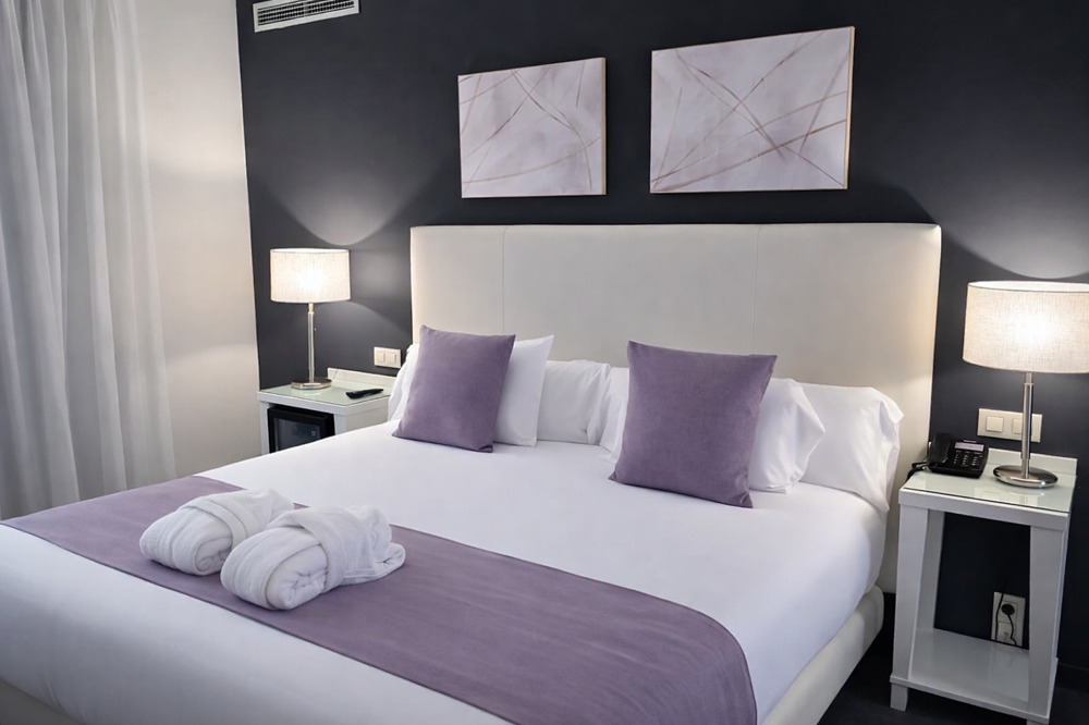 Habitación espaciosa de 34m2 y con terraza haciendo esquina de 7m2. Cuenta con cama de matrimonio de 2x2.